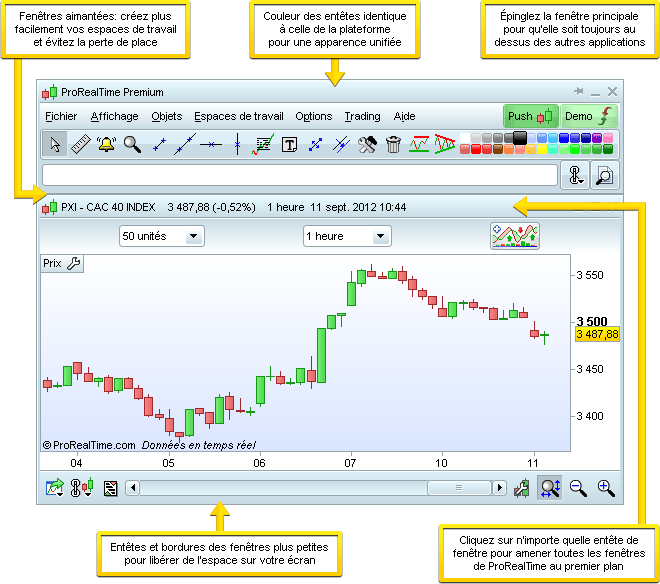 Les fenêtres indicateur, système de trading et ProScreener ont été repensées et incluent de nouvelles fonctionnalités (dont l'import / export de codes mentionné pus haut).