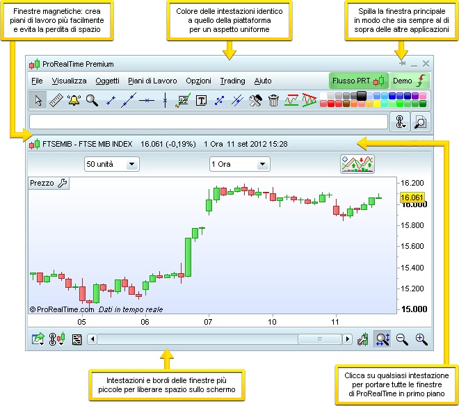 Ora può visualizzare fino a150000 unità di dati storici nelle viste intraday con la versione Premium di ProRealTime.